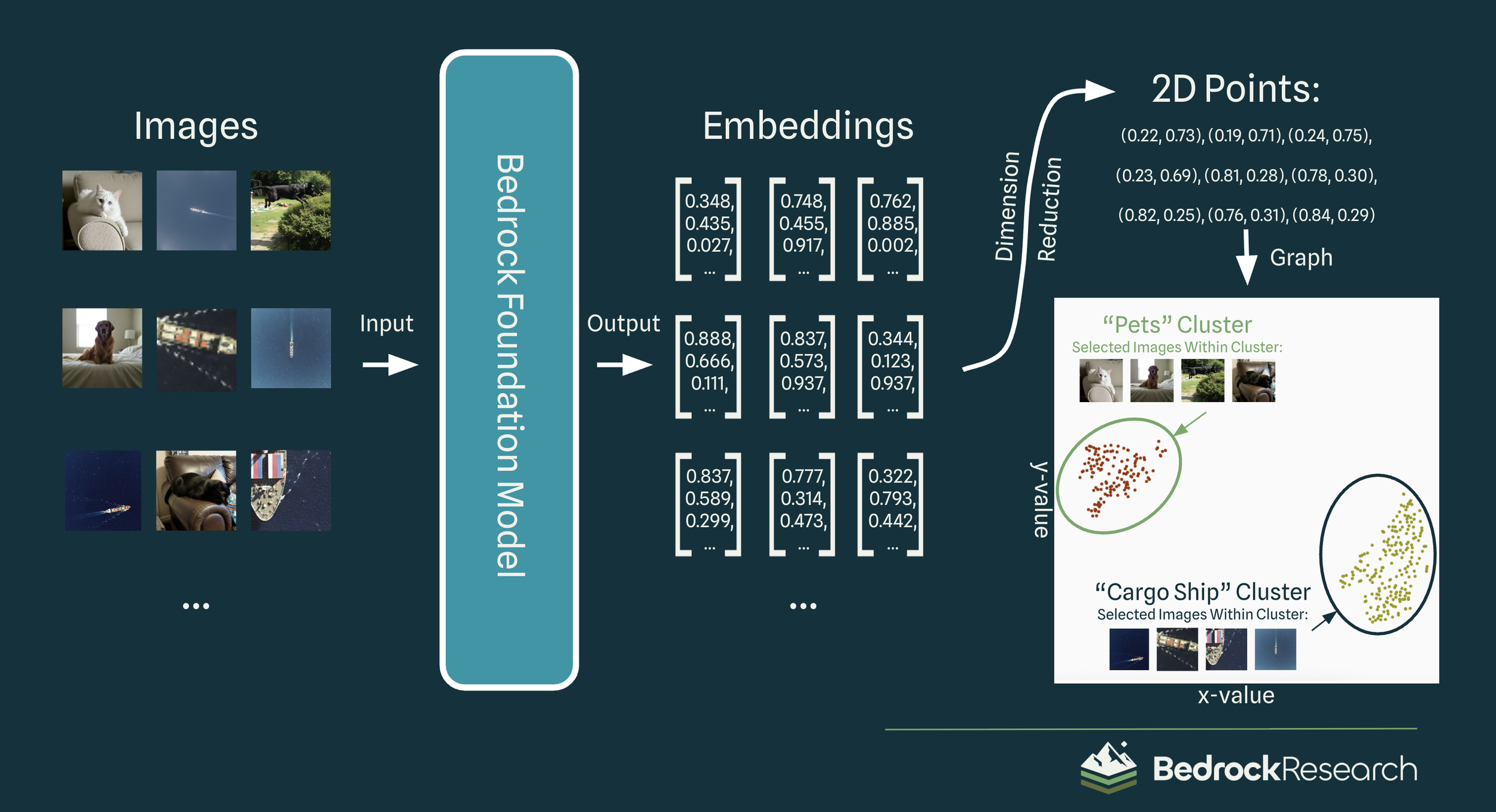 While techniques for such classification have existed for decades, the key to this approach is that the model has never seen a single label. Not once has it been told that “this is an image of a pet”, instead it simply learned what features of pets make them distinct from other images. For teams drowning in overhead imagery, this matters because Bedrock can jump straight from raw scenes to actionable insights without spending time and money on a comprehensive labelling campaign.