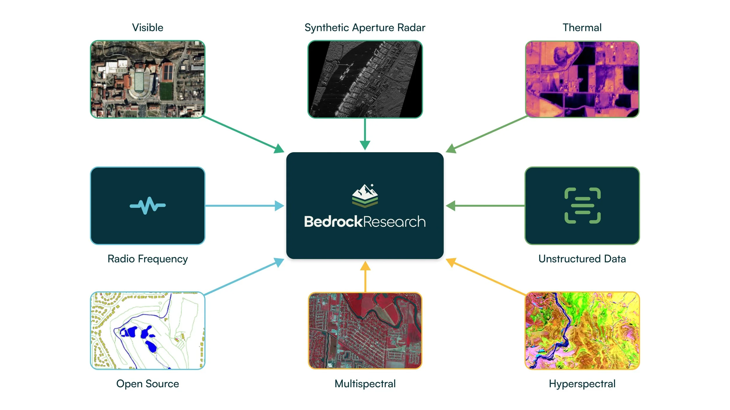 Bedrock’s geospatial foundation model can ingest and fuse over 15 sensor and data types into a unified, mission-relevant picture. This enables context-rich insights to be drawn across sensors, unlocking patterns and connections no single source could reveal on its own.